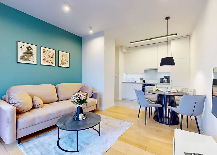 Το Bonbon Apartment With Parking Kolska Βαρσοβία 40 τ.μ. Διαθέτει βεράντα και απέχει 25 λεπτά περπάτημα από το Πάρκο της Σαξονίας. Οι επισκέπτες έχουν στη διάθεση τους Wi-Fi και ιδιωτική στάθμευση.